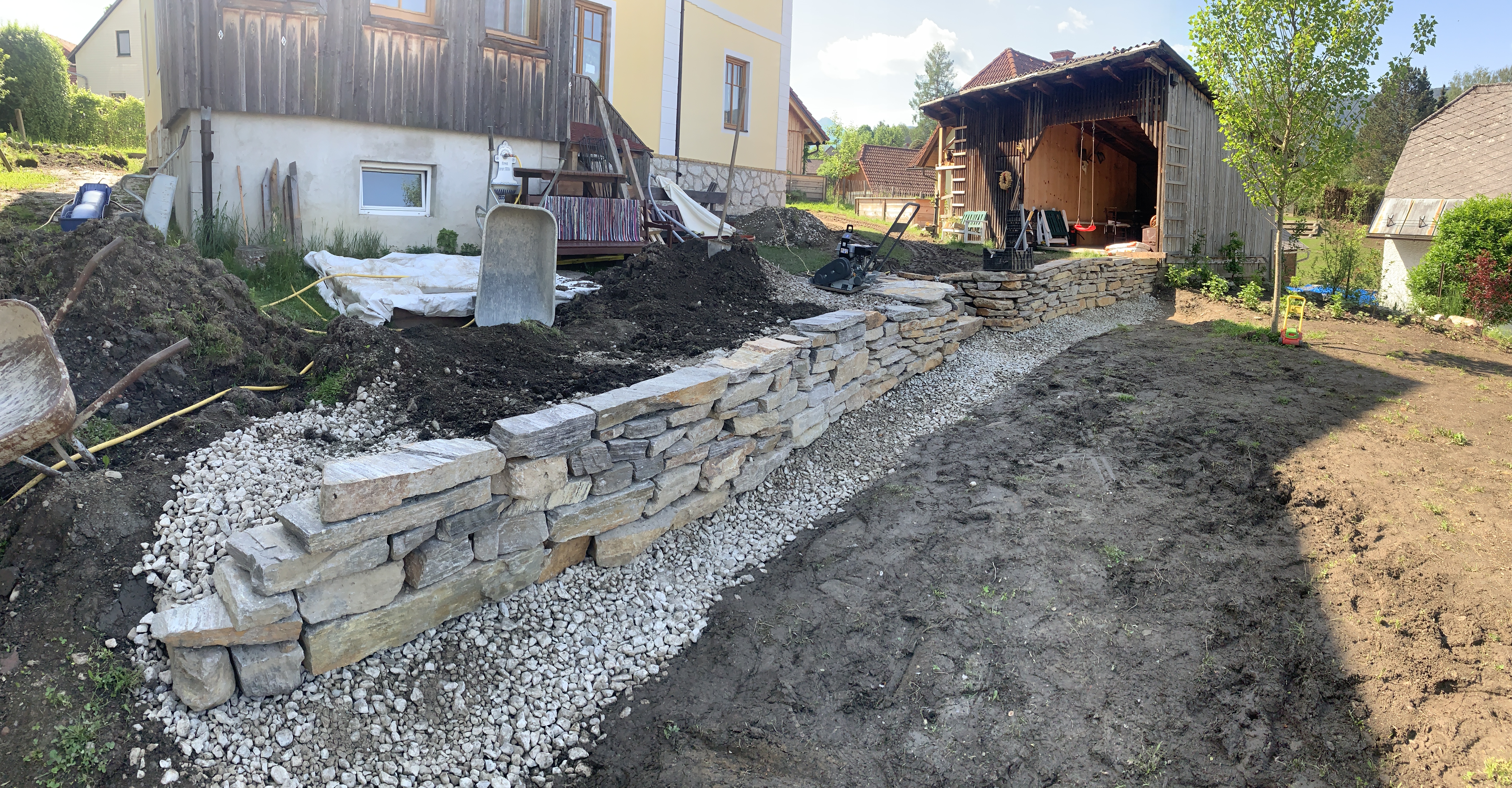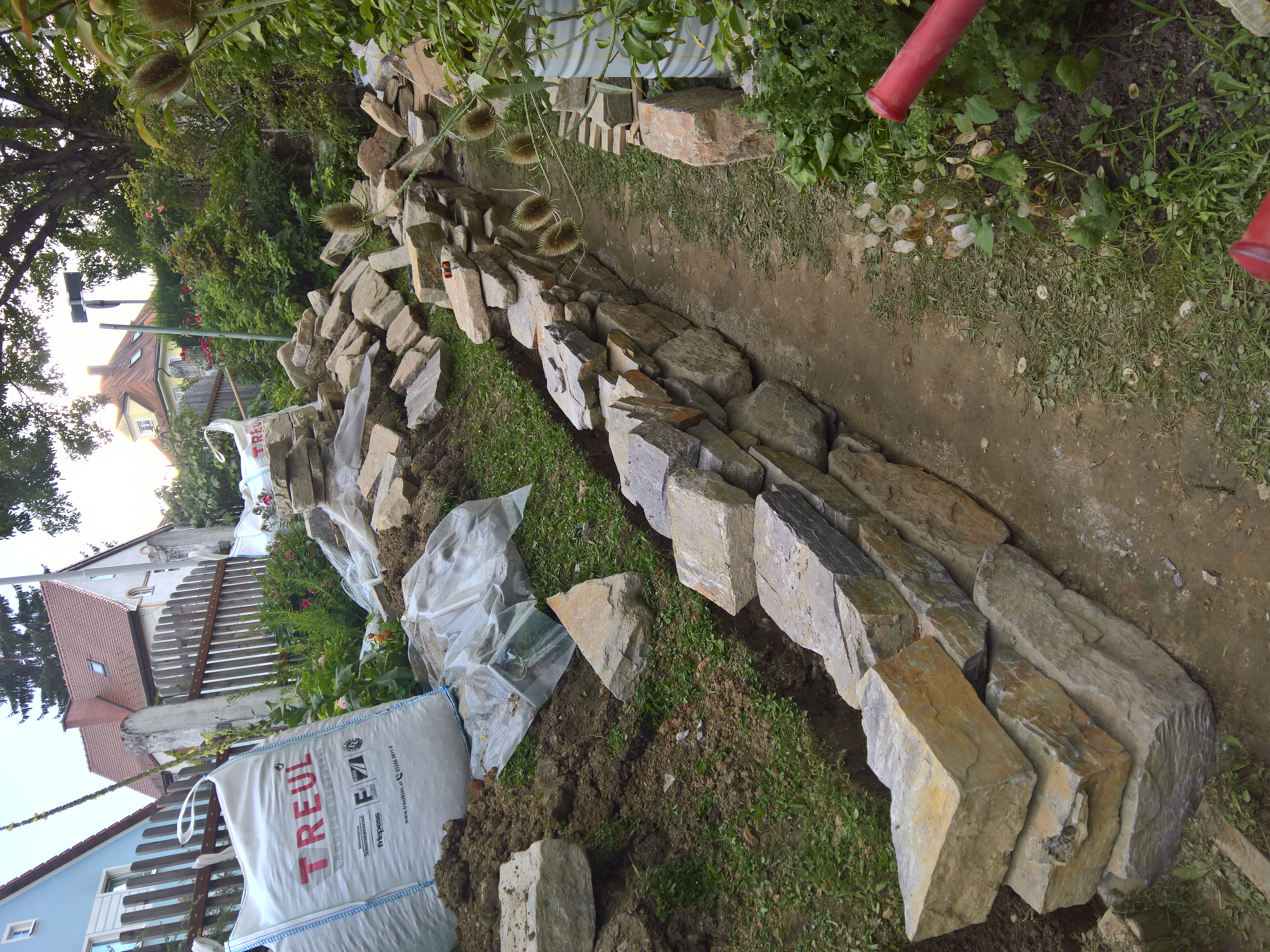 Löffelsteinmauer während des Aufbaus